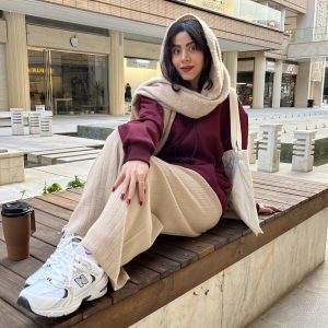 شلوار بافت کرم 1256
